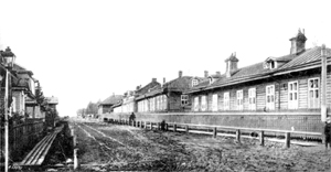 | Дамба к пристани | Групповой портрет выпускников и преподавателей Александровского технического училища во главе с директором Н. И. Потаповым (1 ряд, 4-й слева) |