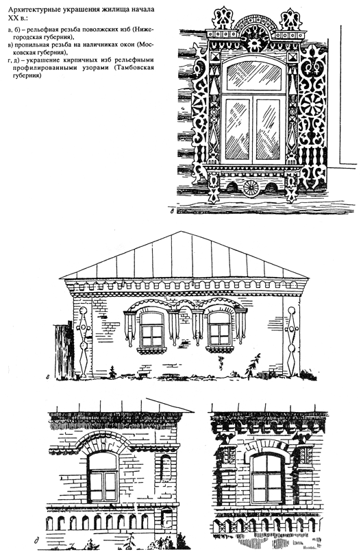 В разных районах расселения русских имелись свои особенности в строительном материале возводимых построек, их высоте, покрытии кровли, архитектурном оформлении фасада, составе и планировке жилых помещений, формах