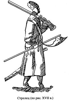 В целом принципы комплектования русского войска периода феодальной раздробленности устарели к XVI в. На смену княжеским полкам пришло стрелецкое войско, включавшее пешие и конные полки. Стрельцы являлись служилыми людьми, которых первоначально набирали из свободного городского и сельского населения, а затем превратили в особое военное сословие, так что дети наследовали родителям и во владении городскими дворами и в обязанности нести военную службу. Получая "государево денежное и хлебное жалованье", они несли в мирное время караульную и полицейскую службу, занимались ремеслами и торговлей. Они имели казенное единообразное вооружение, в котором ведущую роль играло огнестрельное оружие - пищали. Холодное оружие стрельцов составляли сабли и бердыши. Единообразной была и их форменная одежда, - длинные кафтаны, шапки-колпаки, сапоги. Цвет кафтанов, шапок и сапог был у каждого полка свой- красный, зеленый, лазоревый, желтый и т.п.,- только ему присвоенный. Командовал полком стрелецкий голова; при нем состояли помощник -полуголова и младшие командиры - сотники и десятники.