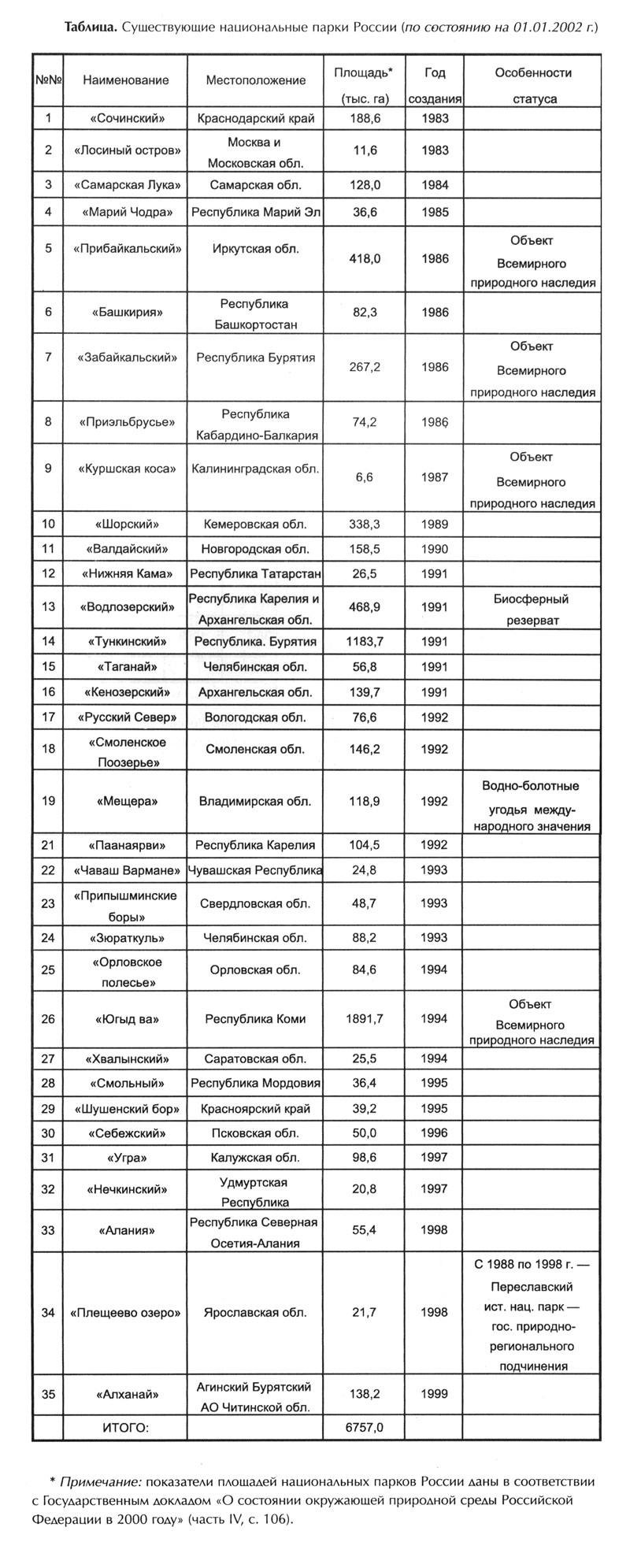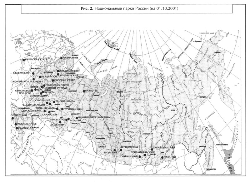 В настоящее время в России насчитывается 35 НП, которые занимают площадь около 7 млн. га, или порядка 0,4% территории.
