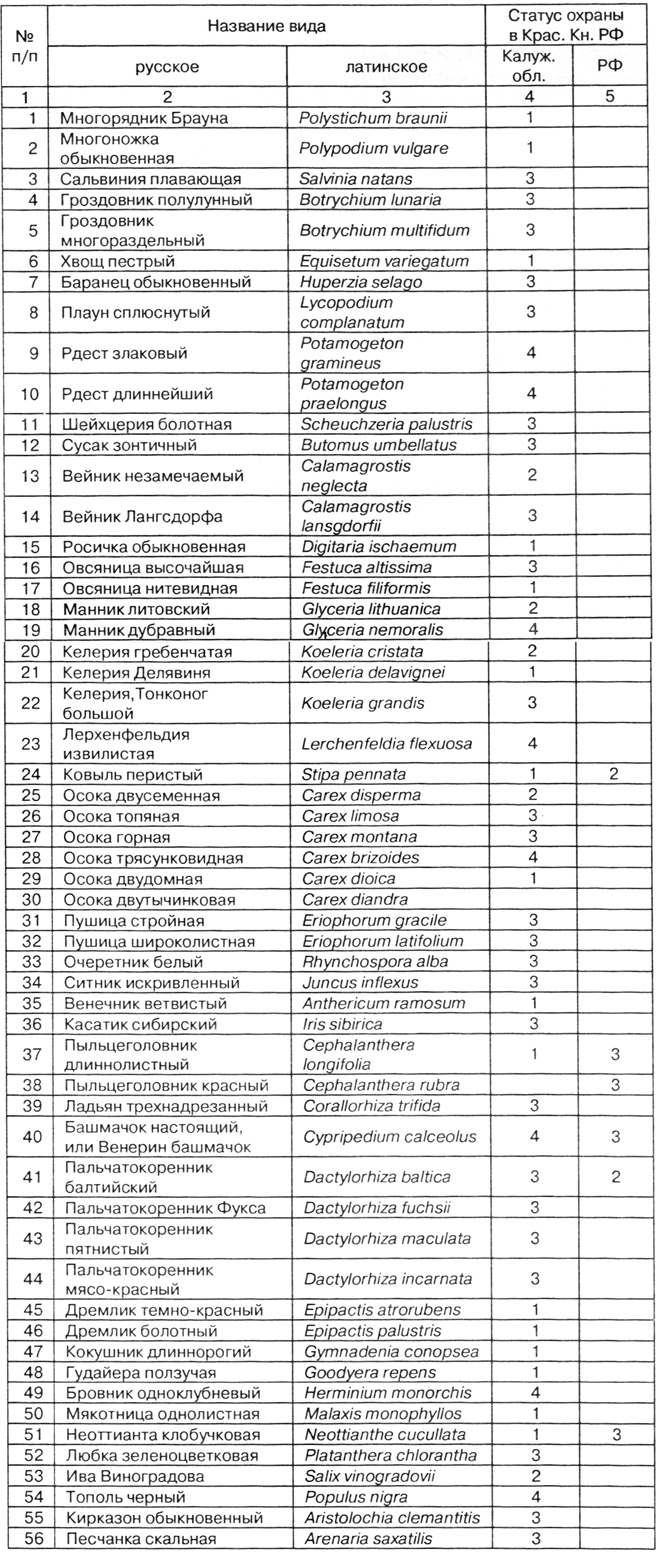 Озеро Орешня (1990; 1,5 га; Козельский район). Старичное озеро р. Жиздры с редкими растениями и выхухолью.