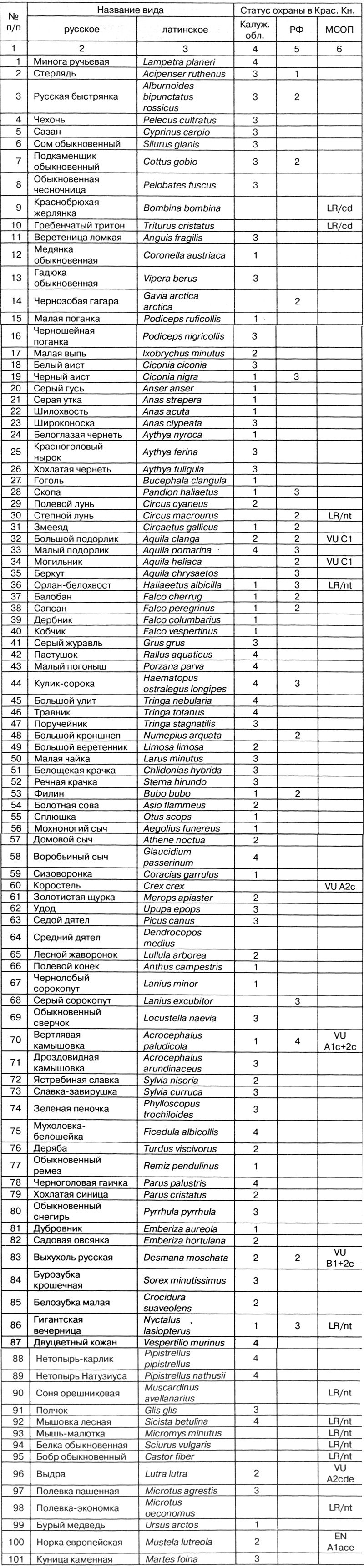 Озеро Ямное (1990; 2 га; Козельский район). Озеро-старица в пойме р. Жиздры; местообитание выхухоли.