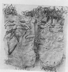 Фото 27, 28 и 29. Женская замшевая парка (вид спереди и сзади), замшевые перчатки и рукавицы атабасков-ттынайцев среднего течения реки Квихпак