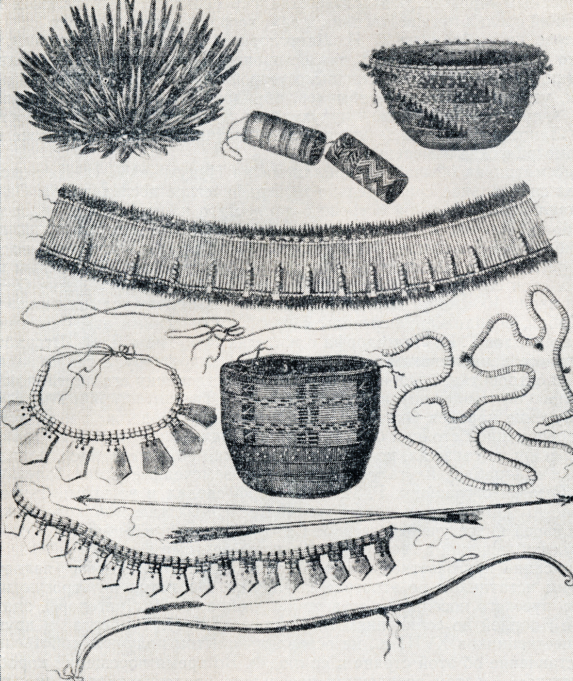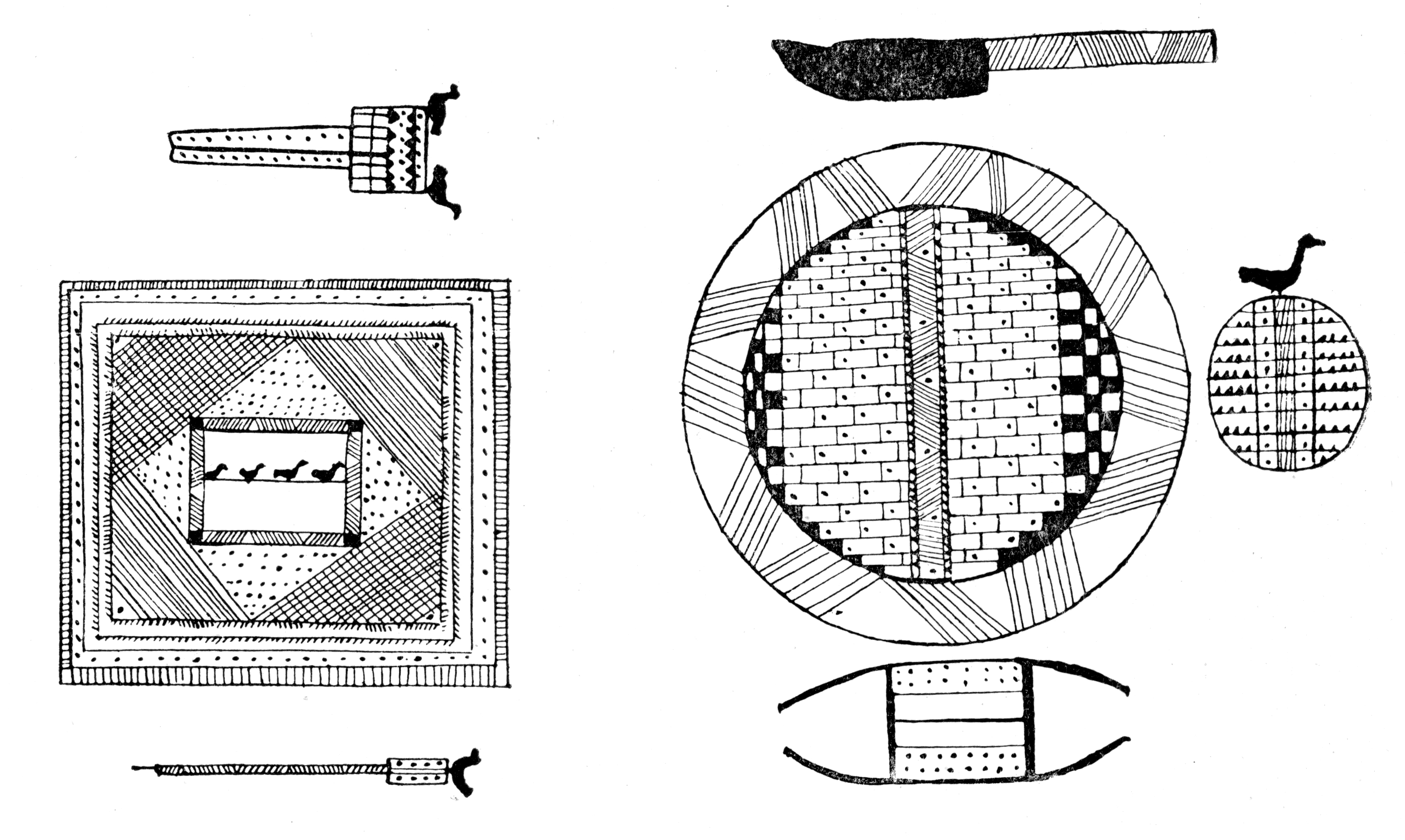 Предметы материальной культуры жителей Новой Калифорнии и Норфольк-Зунда. Рисунок Г. И. Лангсдорфа