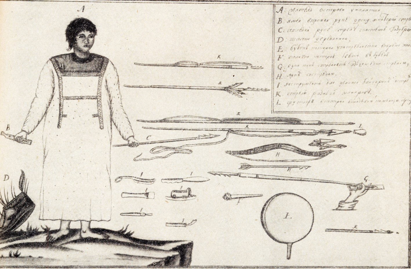 О работе экспедиции П. А. Креницына и М. Д. Левашова в 1768-1769 гг. по научному изучению Алеутских островов и собранных ею этнографических материалах.