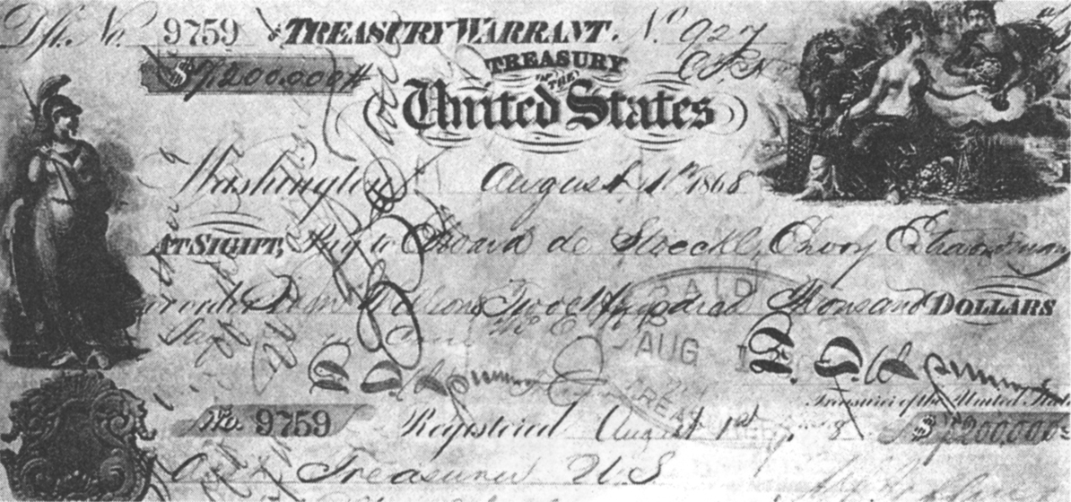 Чек на 7 200 000 долларов, которым правительство Соединенных Штатов оплатило России уступленные территории в Америке