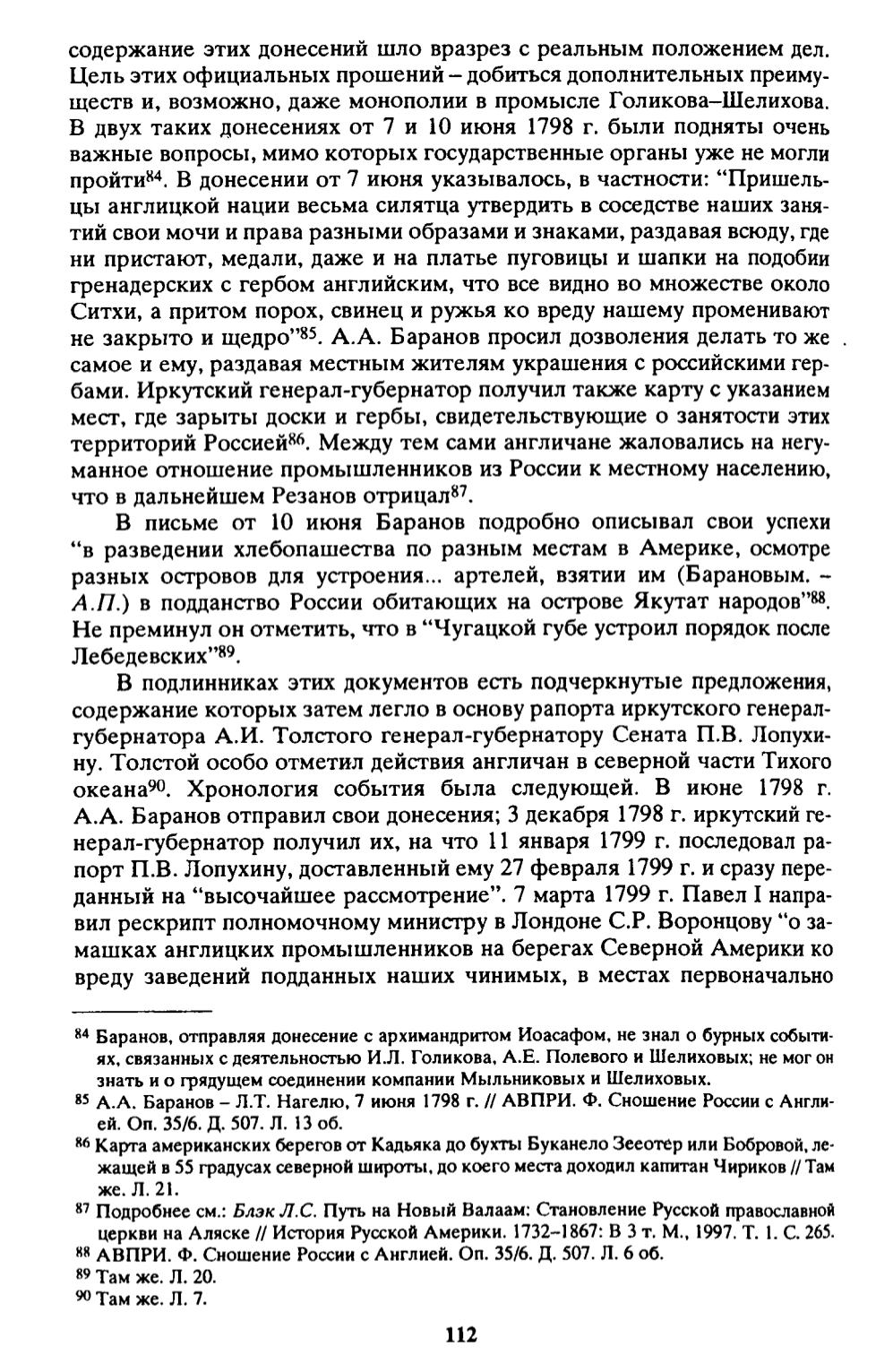 84 Баранов, отправляя донесение с архимандритом Иоасафом, не знал о бурных событи