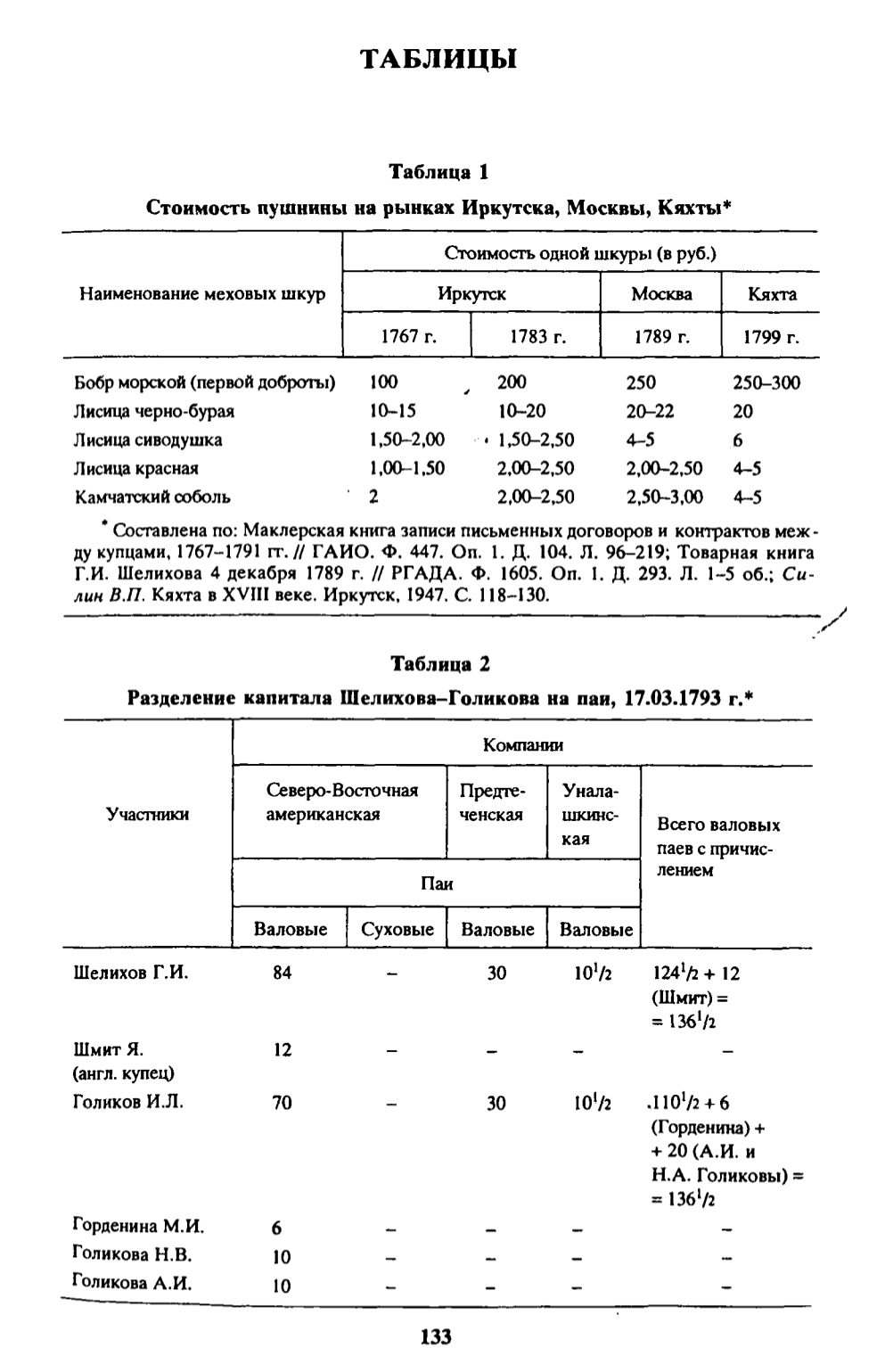 ТАБЛИЦЫ
