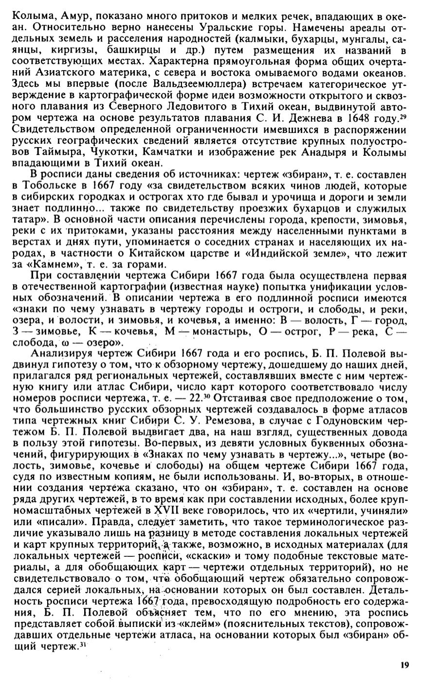 Анализируя чертеж Сибири 1667 года и его роспись, Б. П. Полевой вы