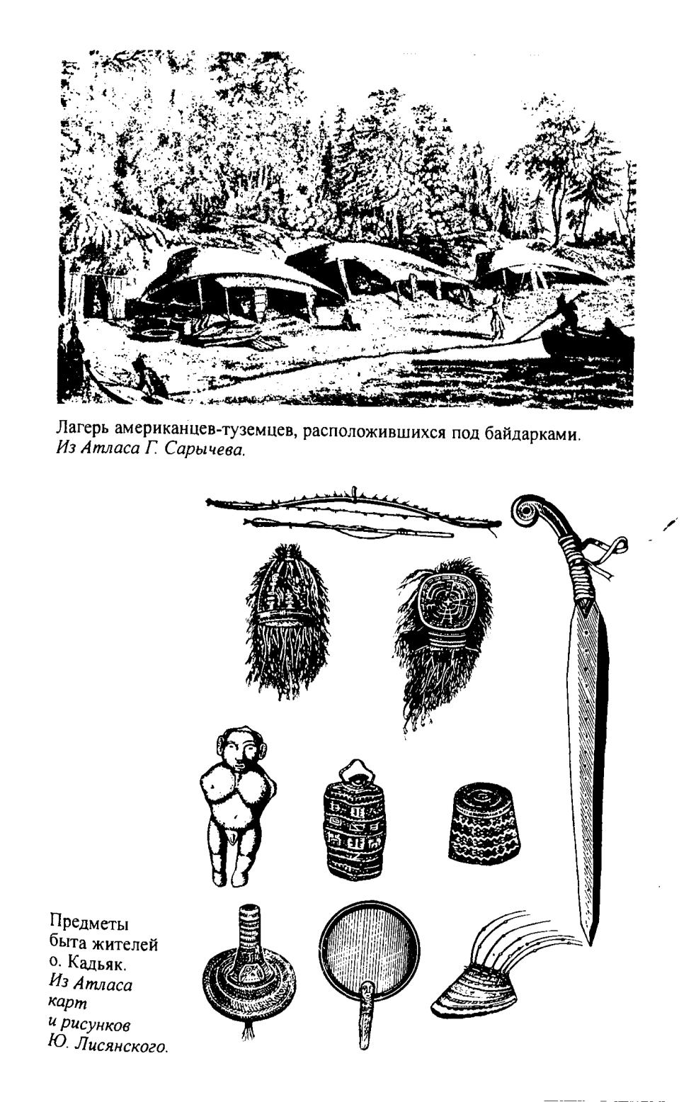 Лагерь американцев-туземцев, расположившихся под байдарками.