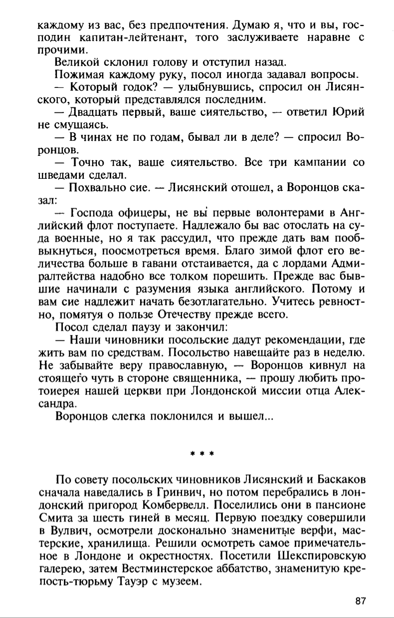 — Похвально сие. —Лисянский отошел, а Воронцов ска