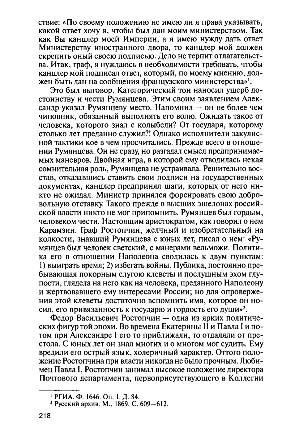 Карамзин. Граф Ростопчин, желчный и изобретательный на