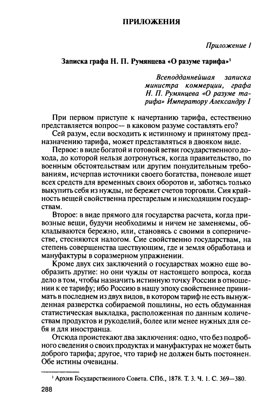 Записка графа Н. П. Румянцева «О разуме тарифа»'