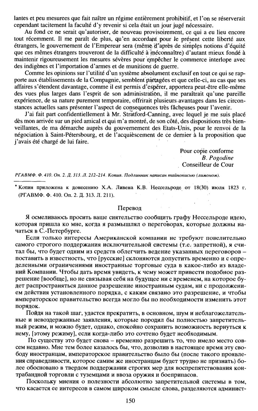 Копия приложена к донесению Х.А. Ливена К.В. Нессельроде от 18(30) июля 1823 г.