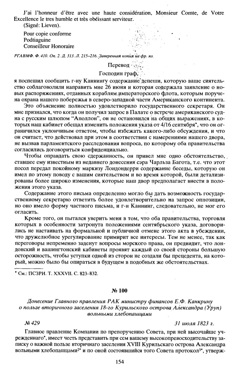 РГАВМФ. Ф. 410. On. 2. Д. 313. JI. 215-216. Заверенная копия на фр. яз.