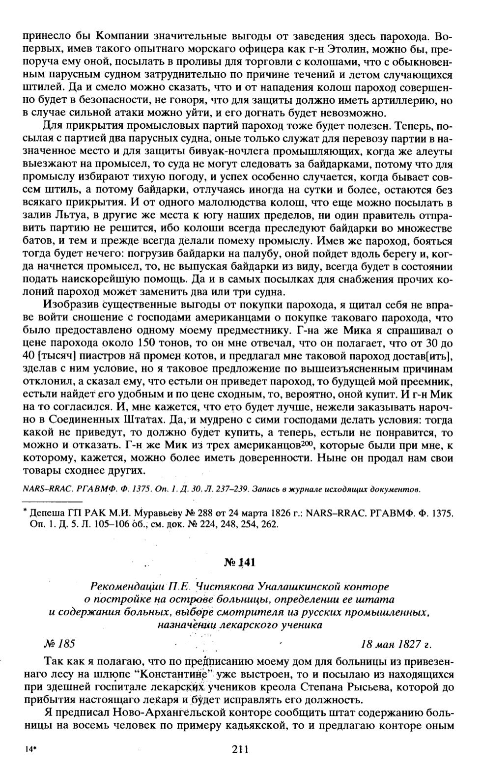 * Депеша ГП РАК М.И. Муравьеву № 288 от 24 марта 1826 г.: NARS-RRAC. РГАВМФ. Ф. 1375.