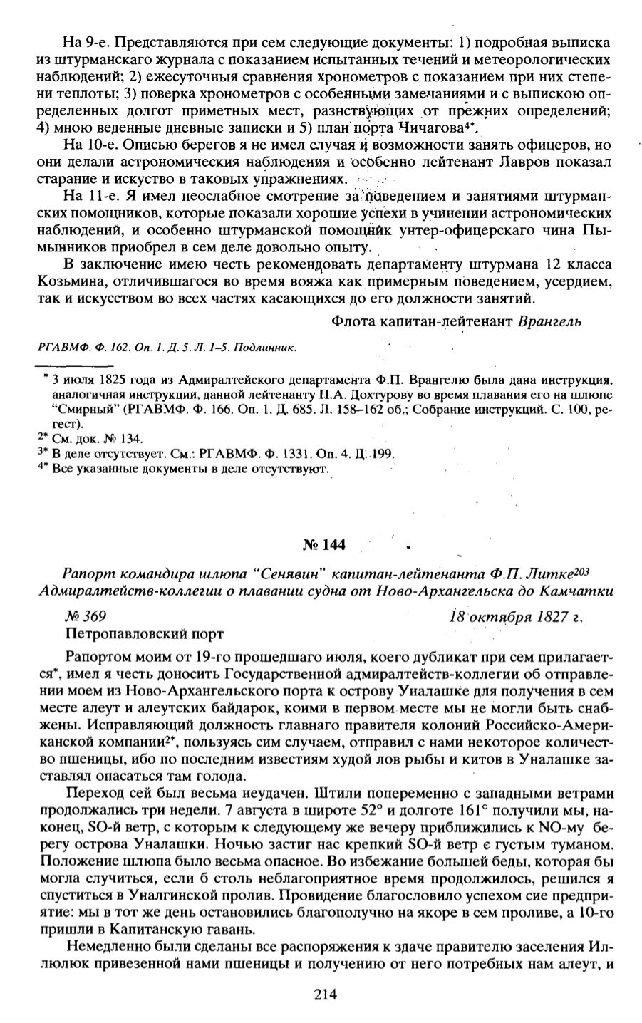Рапорт командира шлюпа “Сенявин" капитан-лейтенанта Ф.П. Литке203