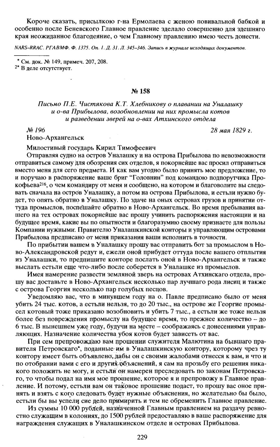Уведомляю вас, что в минувшем году на о. Павле предписано было от меня