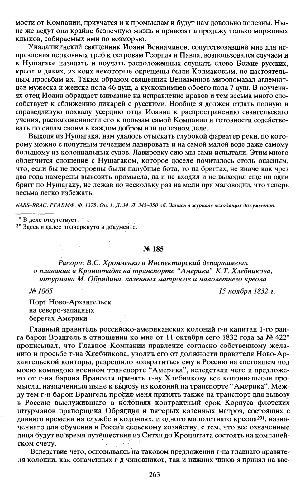 о плавании в Кронштадт на транспорте “Америка” К.Т. Хлебникова,
