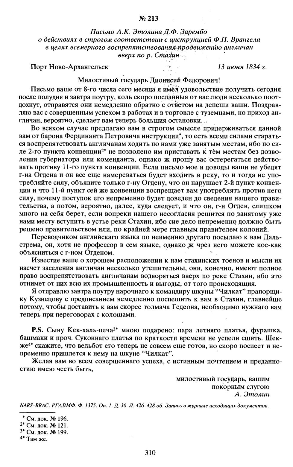 Письмо А.К. Этолина Д.Ф. Зарембо