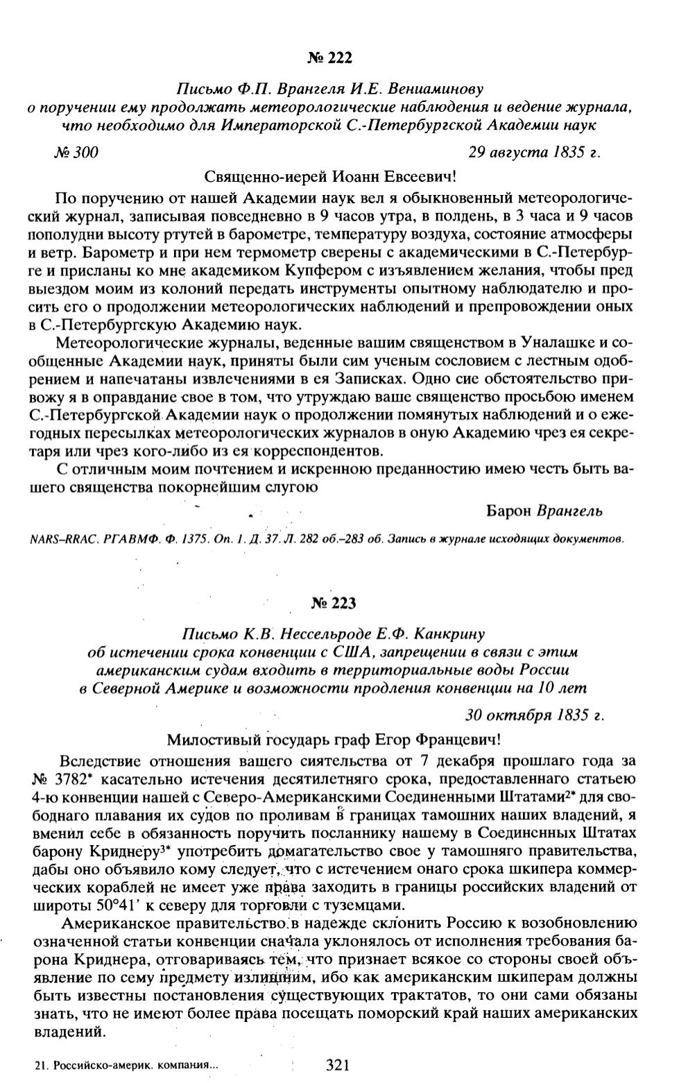 Письмо Ф.П. Врангеля И.Е. Вениаминову
