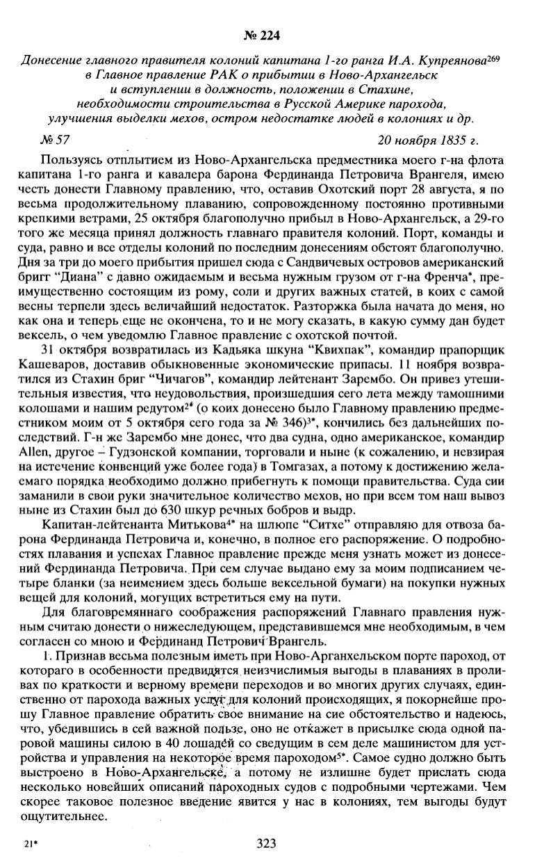 Донесение главного правителя колоний капитана 1-го ранга И.А. Купреянова
