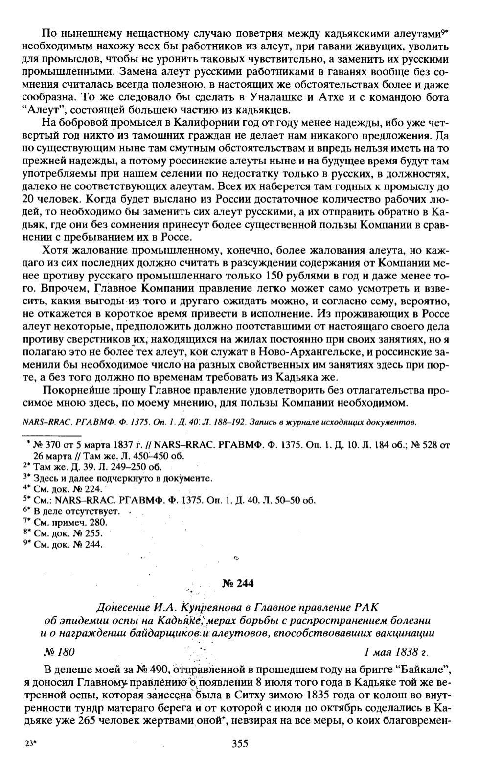 № 370 от 5 марта 1837 г. // NARS-RRAC. РГАВМФ. Ф. 1375. On. 1. Д. 10. Л. 184 об.; № 528 от