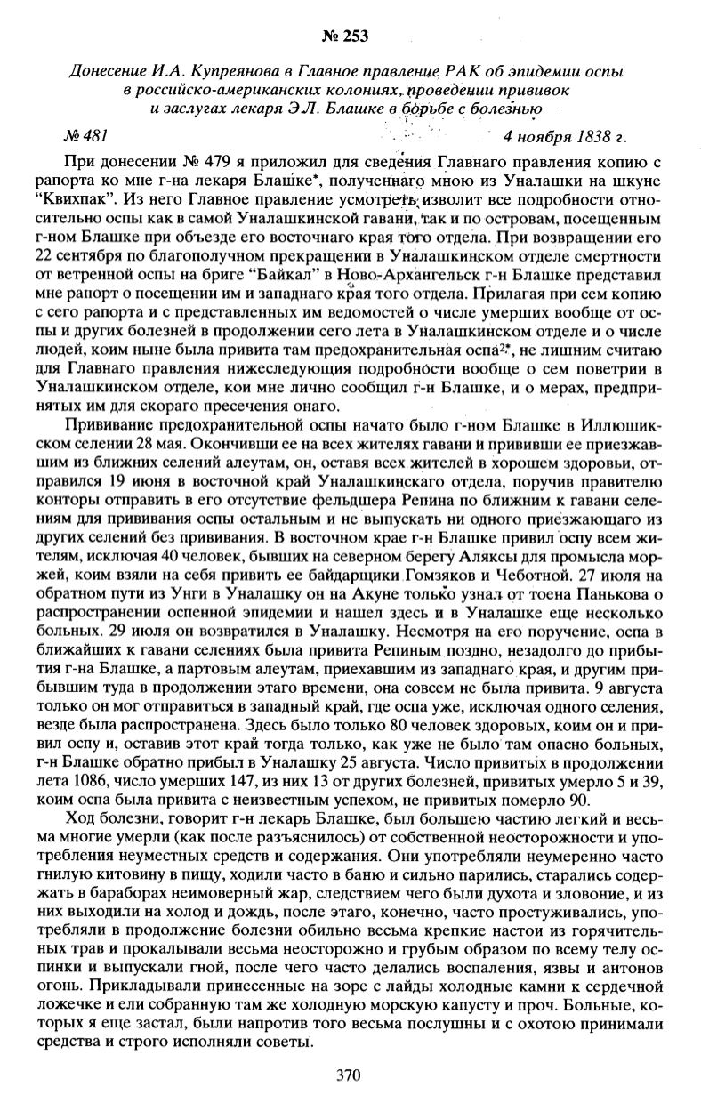 от ветренной оспы на бриге “Байкал” в Ново-Архангельск г-н Блашке представил