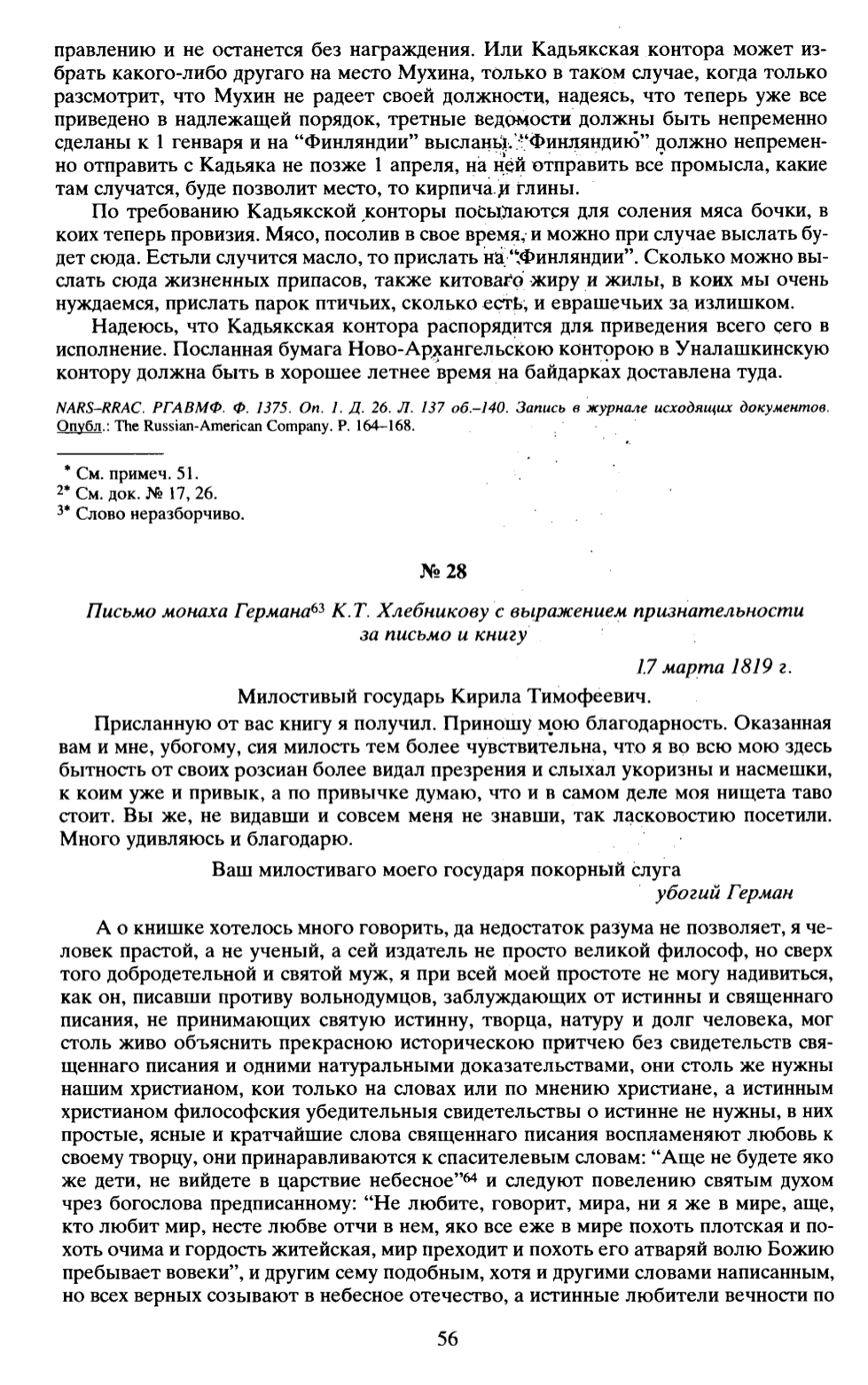 исполнение. Посланная бумага Ново-Архангельскою конторою в Уналашкинскую