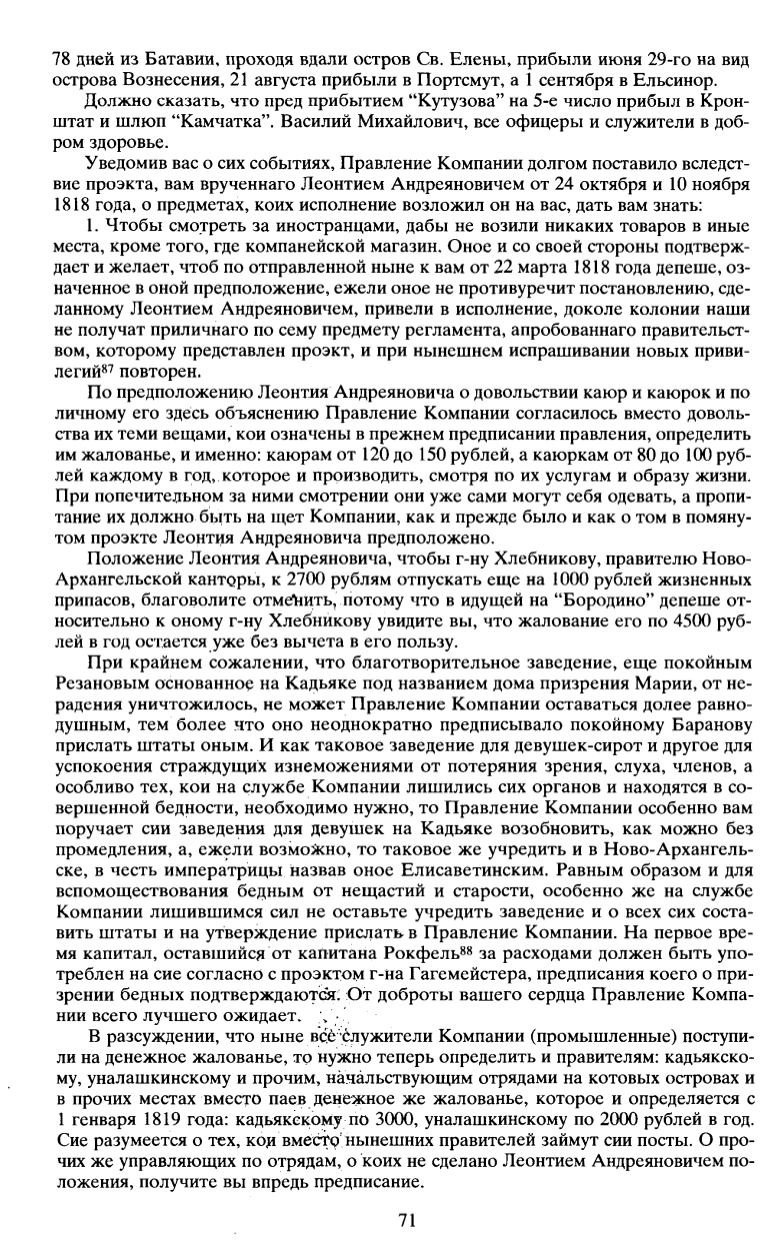 1 генваря 1819 года: кадьякекому по 3000, уналашкинскому по 2000 рублей в год.