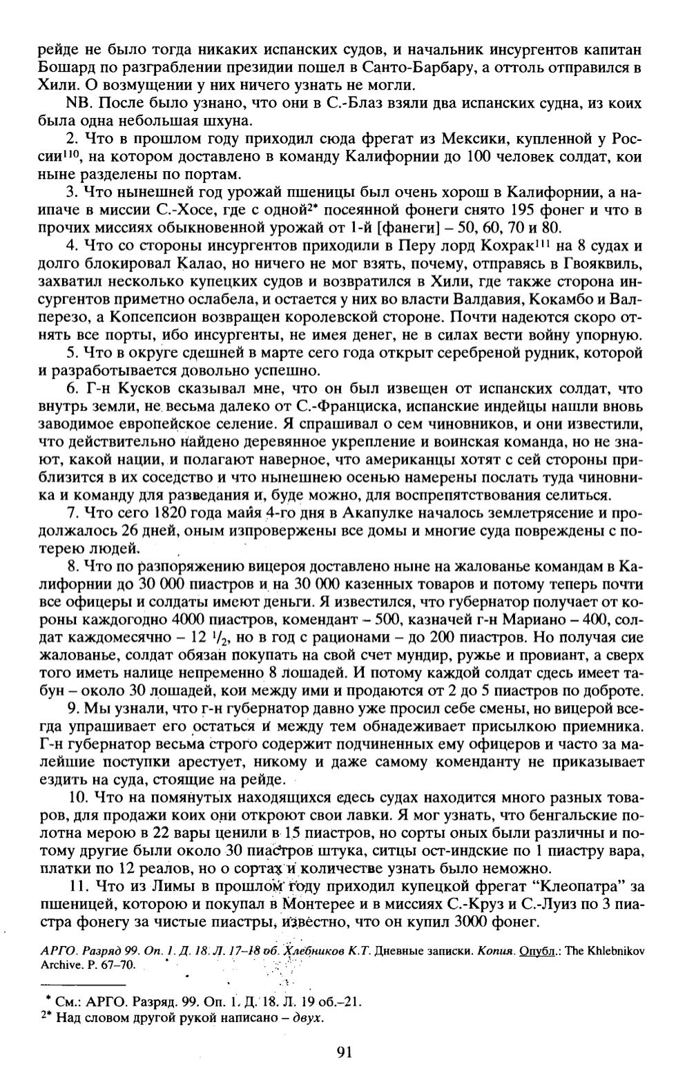 2. Что в прошлом году приходил сюда фрегат из Мексики, купленной у Рос
