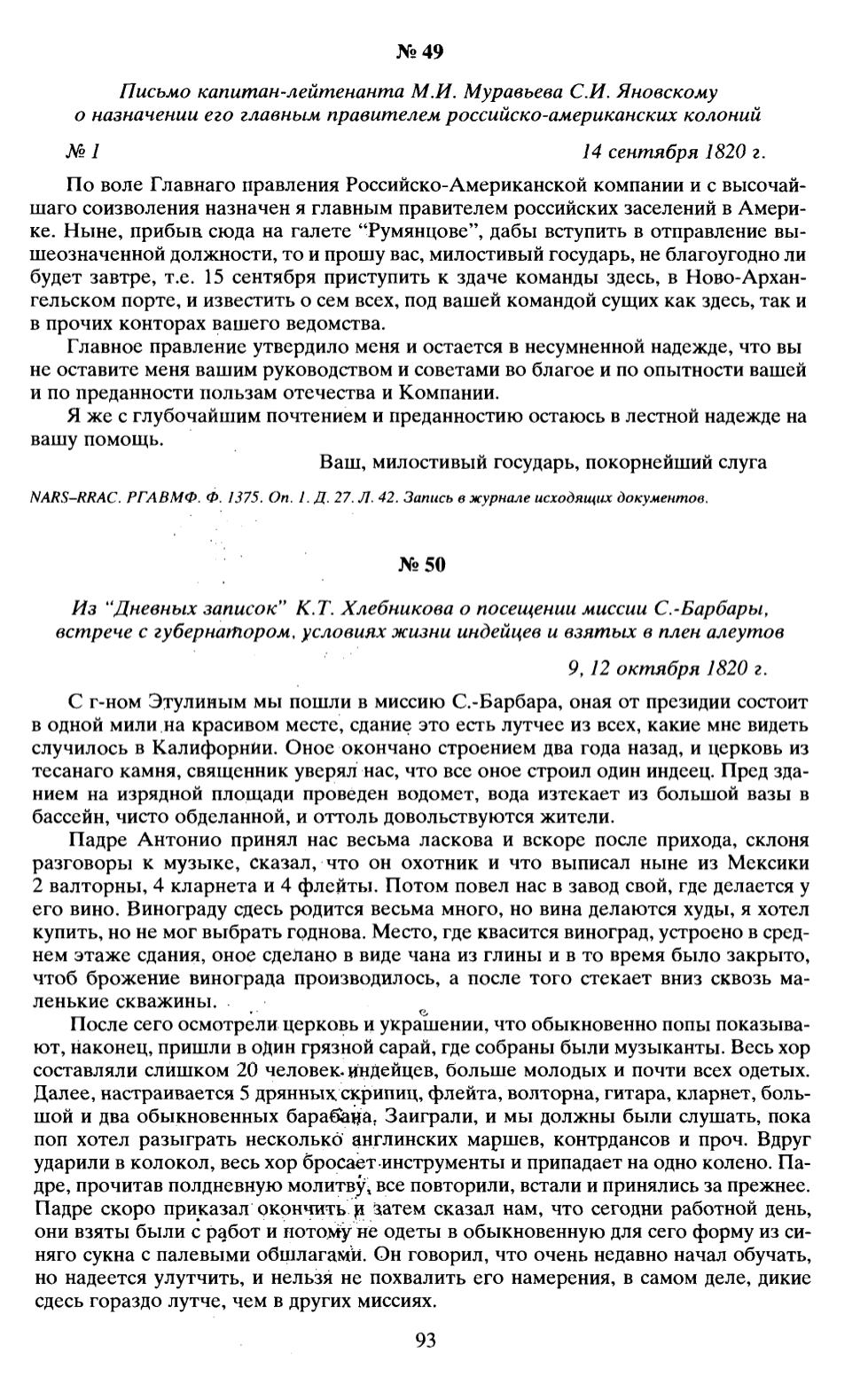 Из “Дневных записок” К.Т. Хлебникова о посещении миссии С.-Барбары,