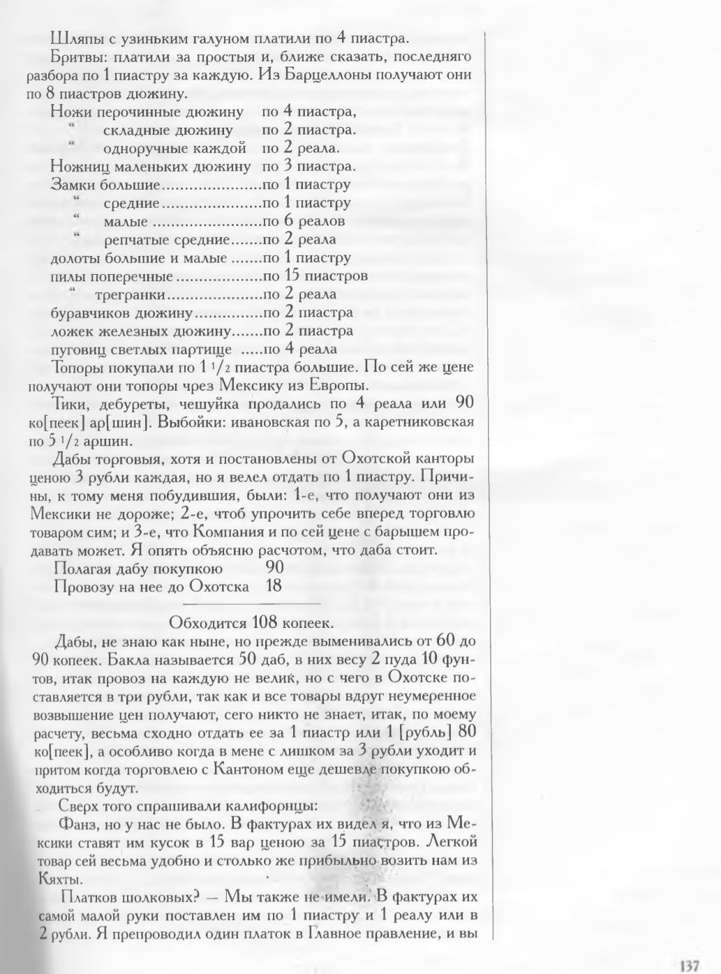 ценою 3 рубли каждая, но я велел отдать по 1 пиастру. Причи
