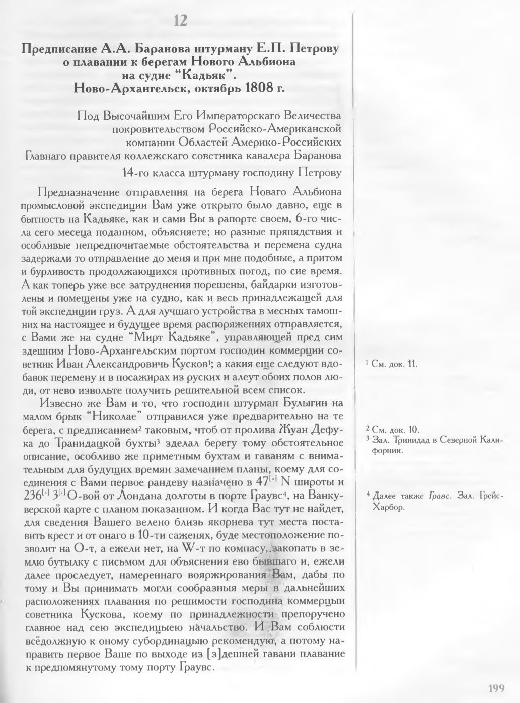 Предписание А .А . Баранова штурману Е.П. Петрову