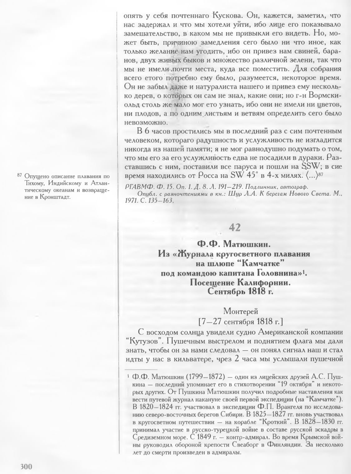 РГАВМФ. Ф . 15. Оп. 1.Д. 8. Л. 191—219. П одлинник, автограф.
