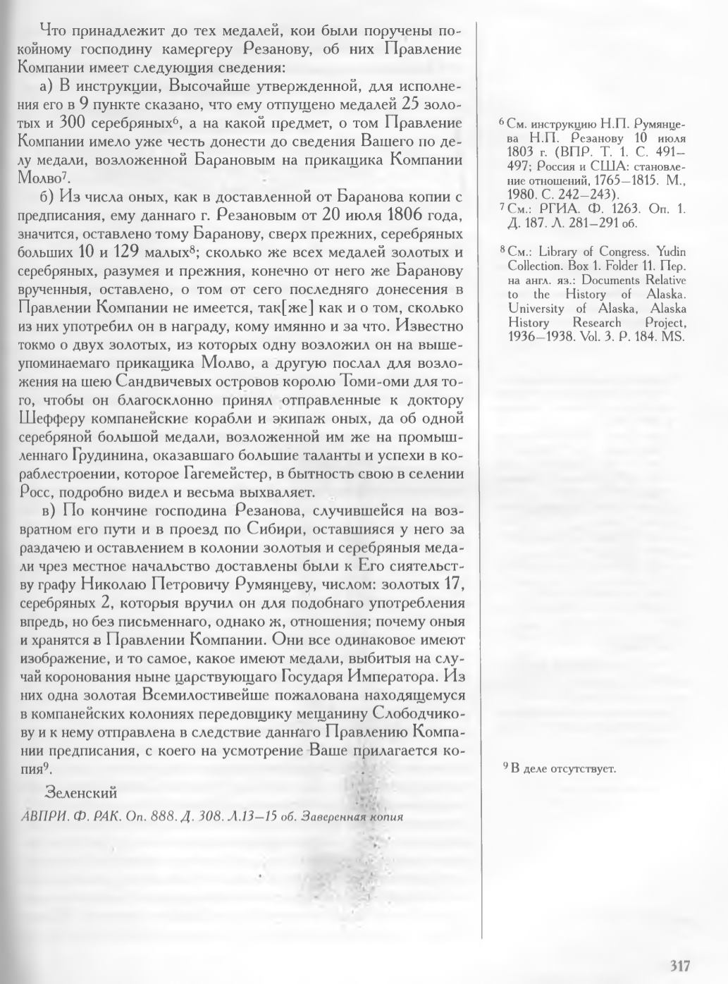 в) По кончине господина Резанова, случившейся на во з