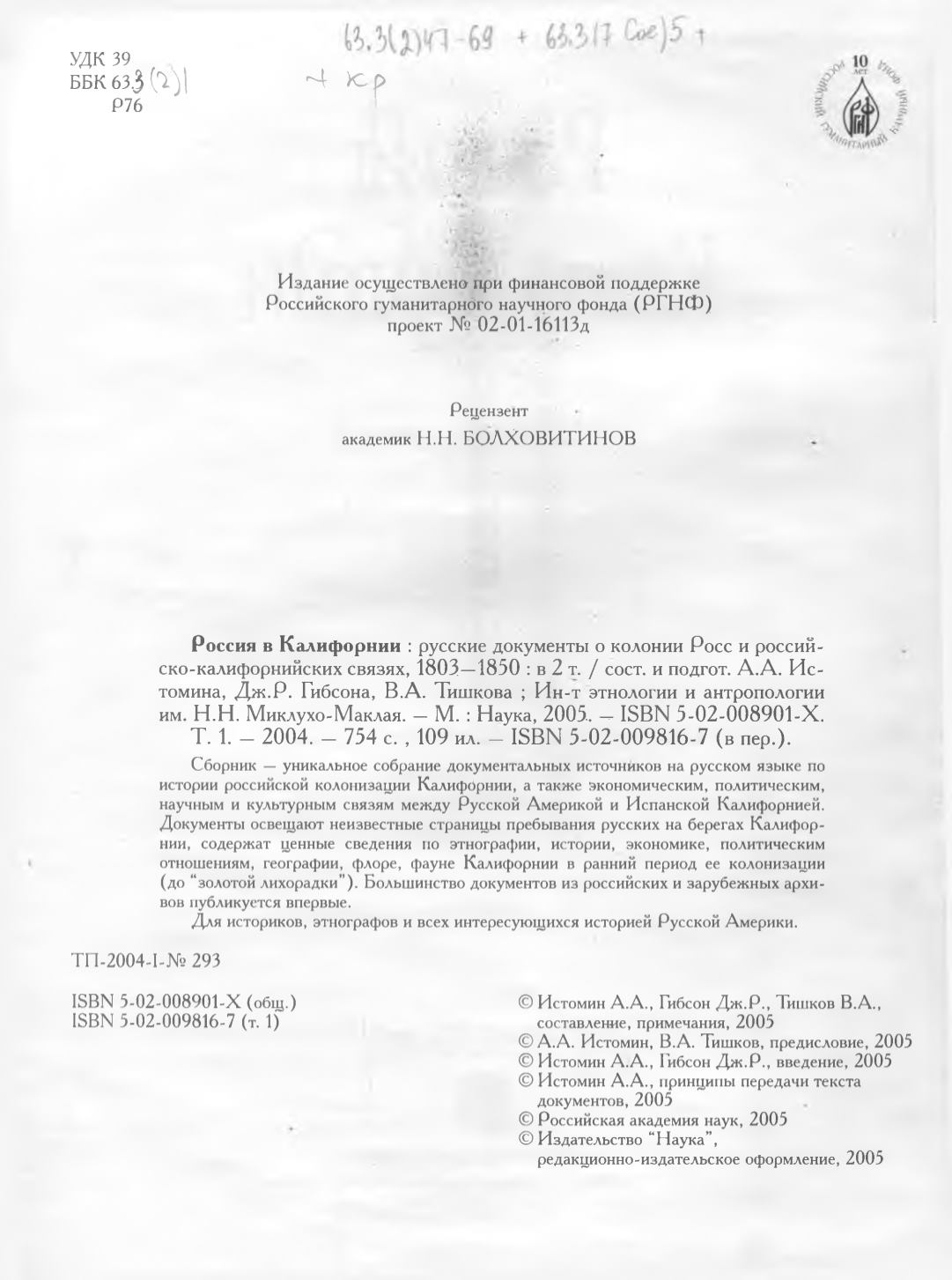 ско-калифорнийских связях, 1 8 0 3 —1 8 5 0 : в 2 т. / сост. и подгот. А .А . И с