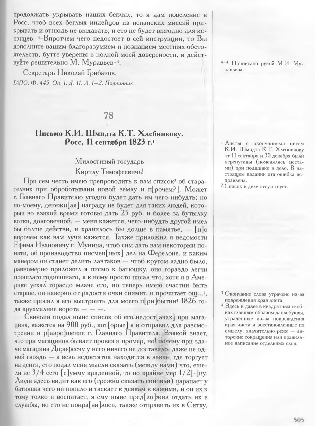 Письмо К .И . Шмидта К .Т . Хлебникову.