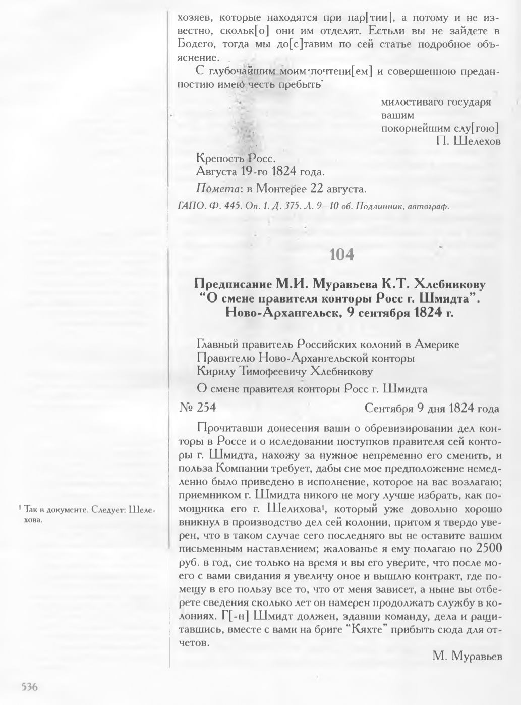 Ново-Архангельск, 9 сентября 1 8 2 4 г.