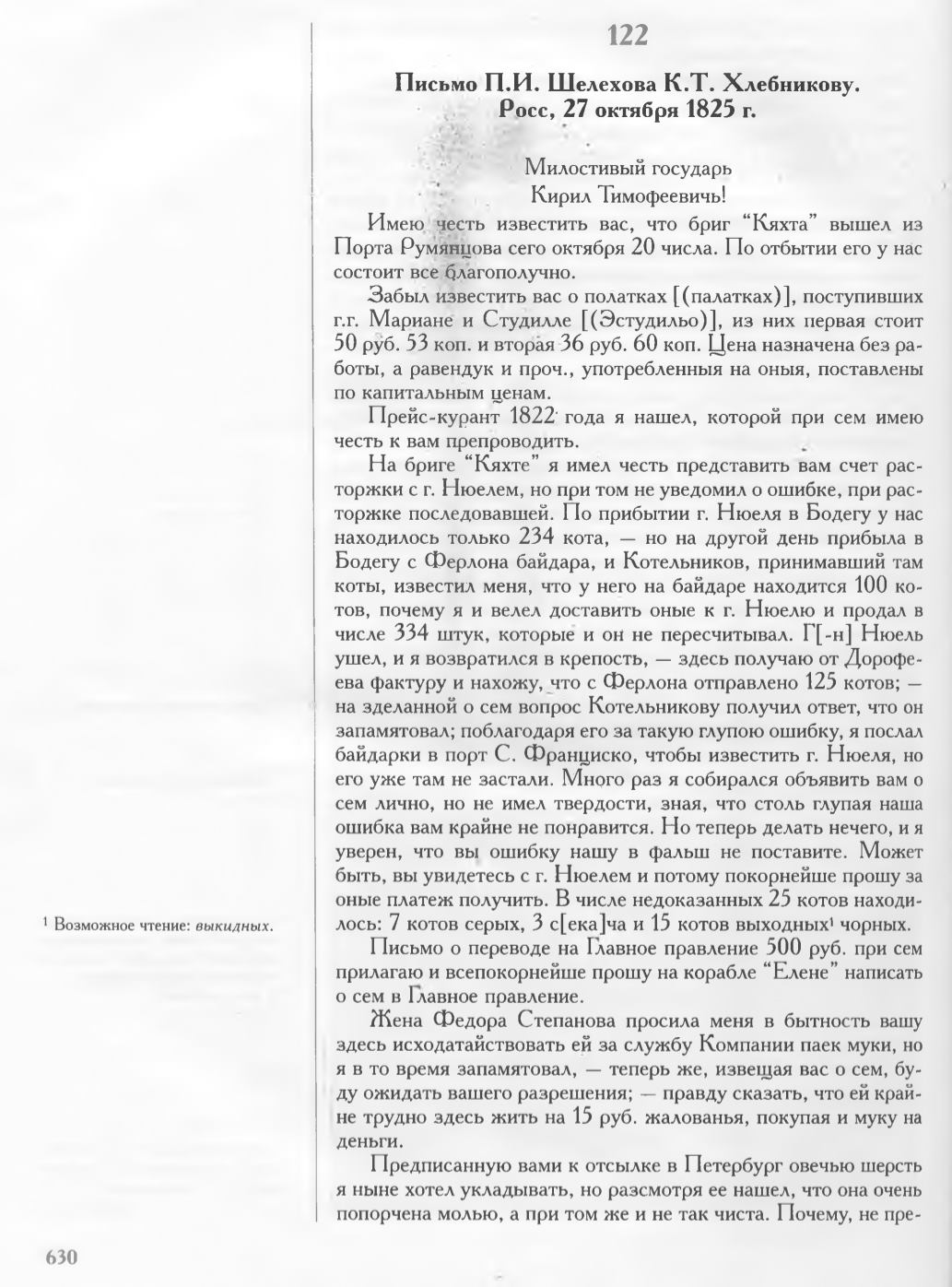 Письмо П.И. Шелехова К .Т. Хлебникову.
