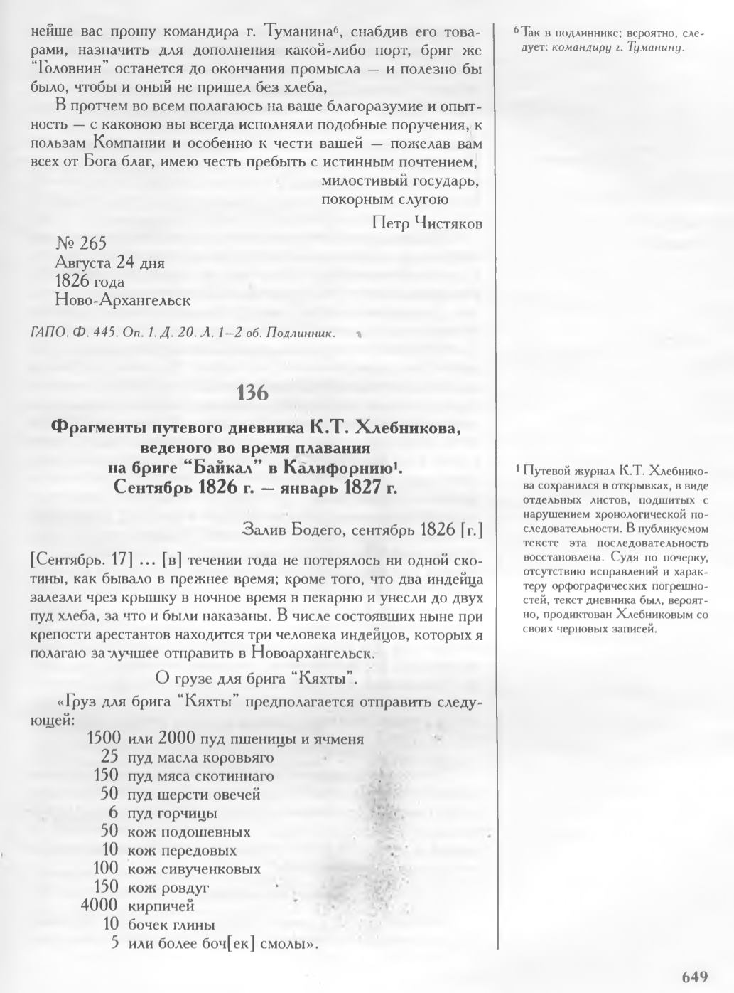 Фрагменты путевого дневника К .Т . Хлебникова,