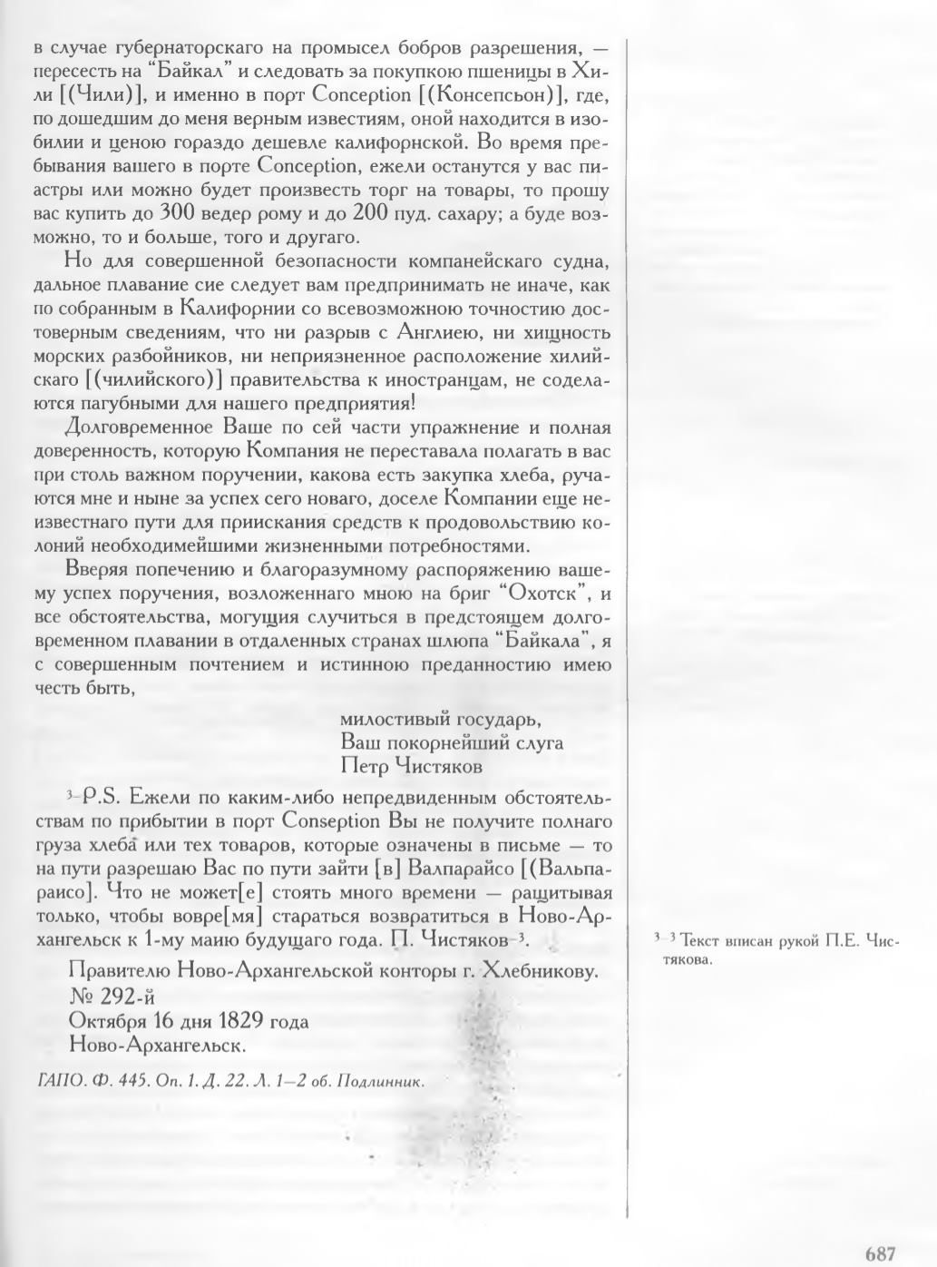 Правителю Ново-Архангельской конторы г. Хлебникову.