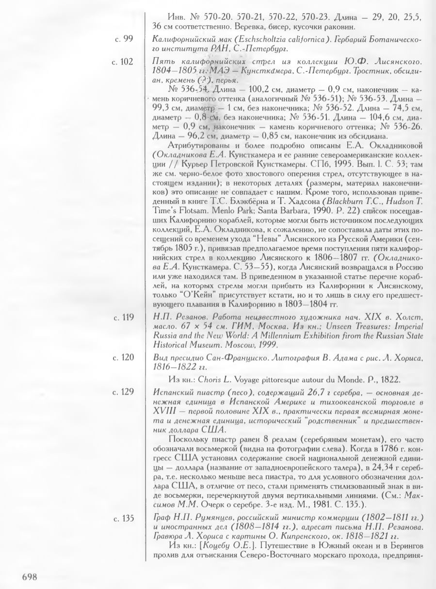 нийских стрел в коллекцию Лисянского к 1806—1807 гг.