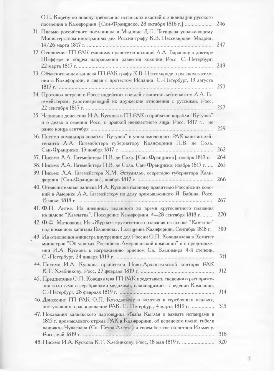 поселения в Калифорнии. [Сан-Франциско, 28 октября 1816 г.] ..................... 246