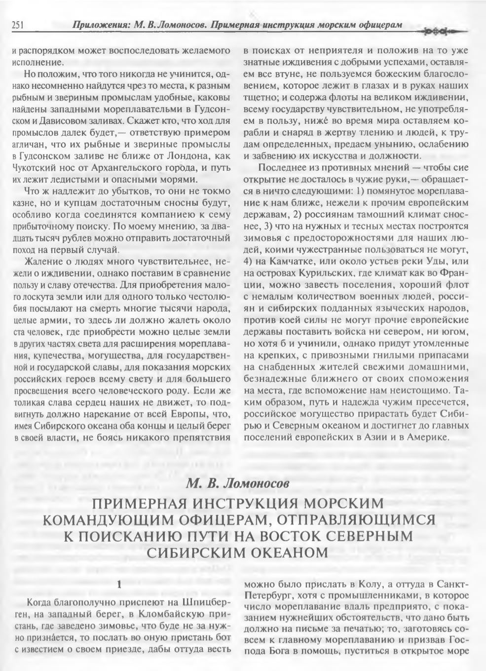 Приложения: М. В. Ломоносов. Примерная инструкция морским офицерам