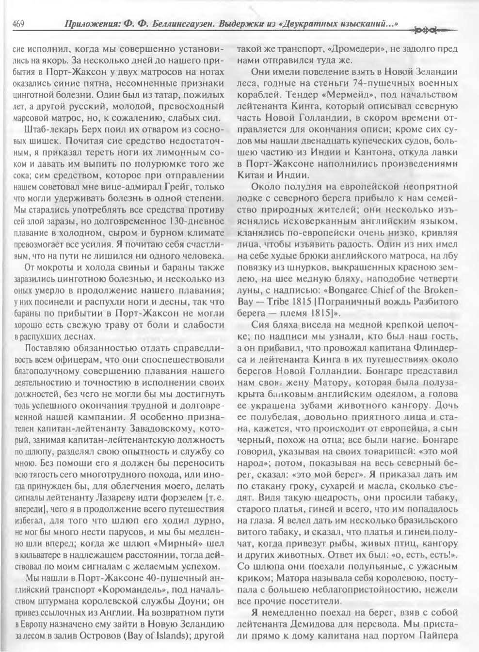 Приложения: Ф. Ф. Беллинсгаузен. Выдержки из «Двукратных изысканий...»
