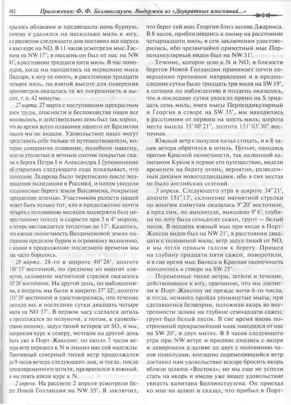 Приложения: Ф. Ф. Беллинсгаузен. Выдержки из «Двукратных изысканий...»