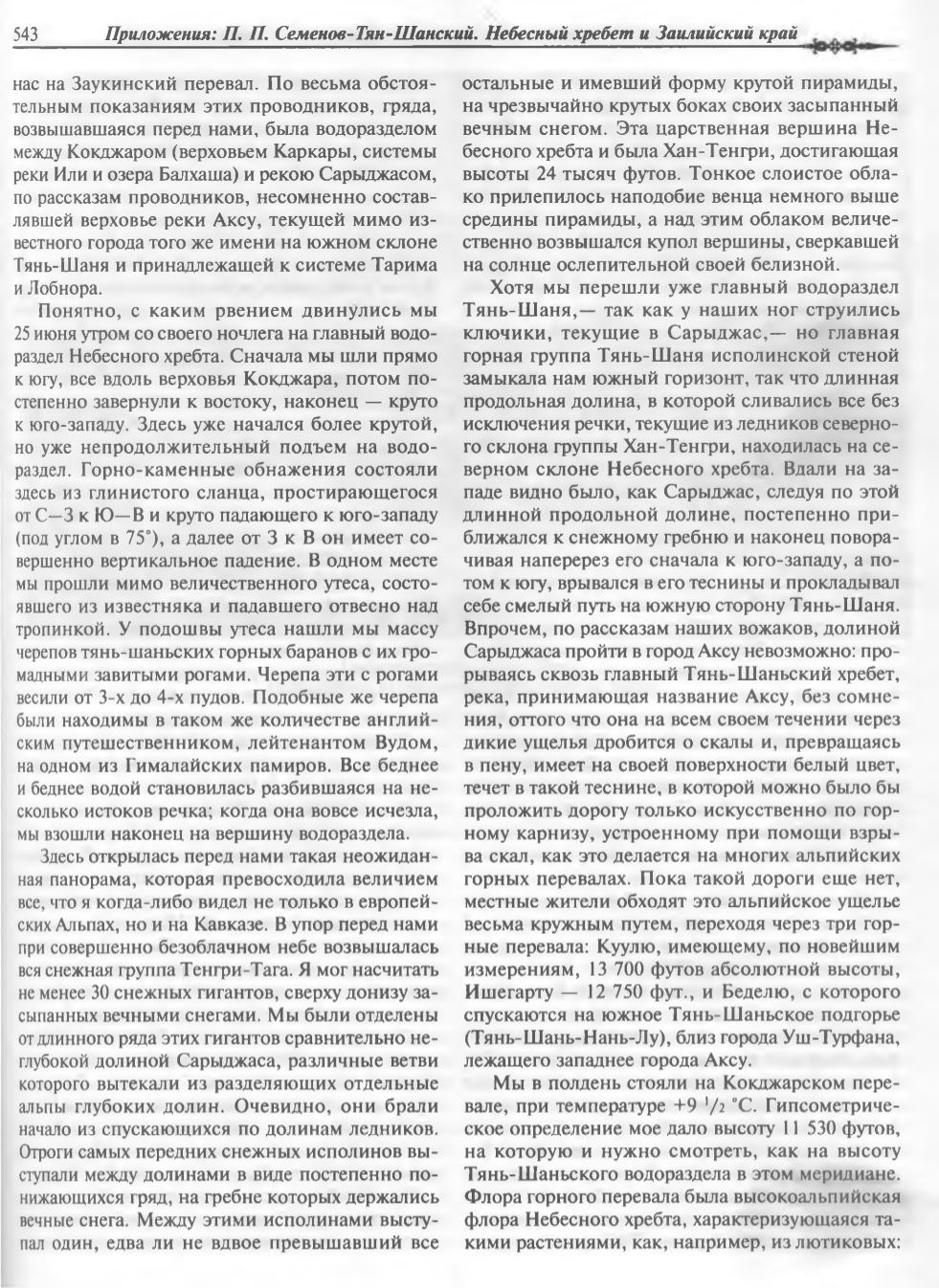 Приложения: П. П. Семенов-Тян-Шанский. Небесный хребет и Заилийский край