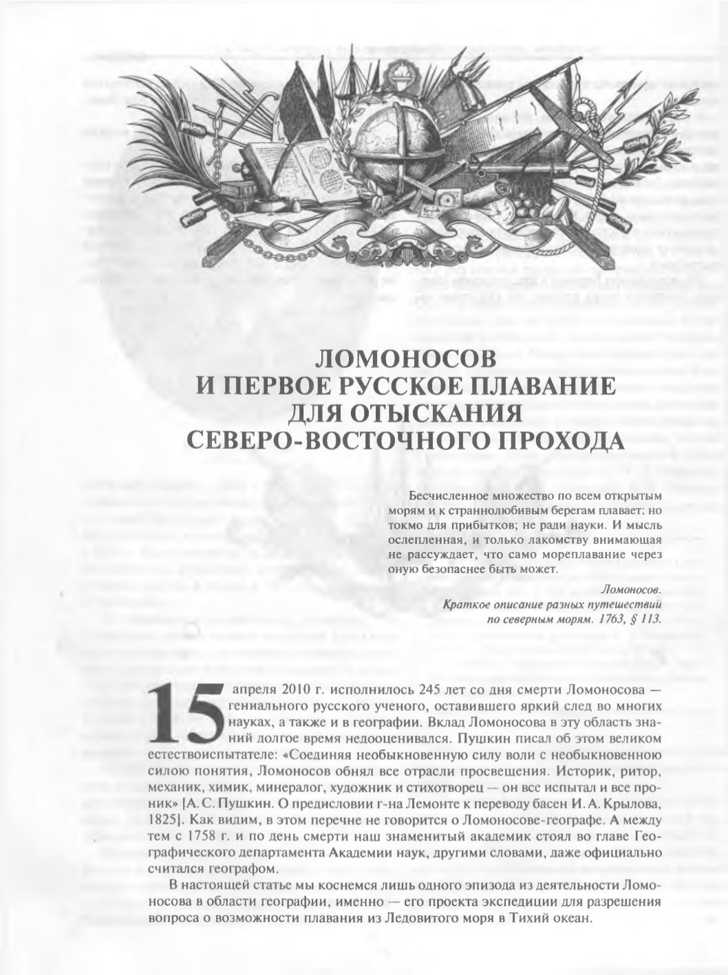 1825]. Как видим, в этом перечне не говорится о Ломоносове-географе. А между
