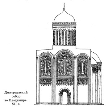 Совсем другое впечатление производит Дмитриевский собор во Владимире. Он не кажется тяжелым и неуклюжим, несмотря на внушительные размеры. Этому способствует великолепный скульптурный декор, сплошь покрывающий фасад. Именно благодаря ему собор выглядит легким и нарядным.